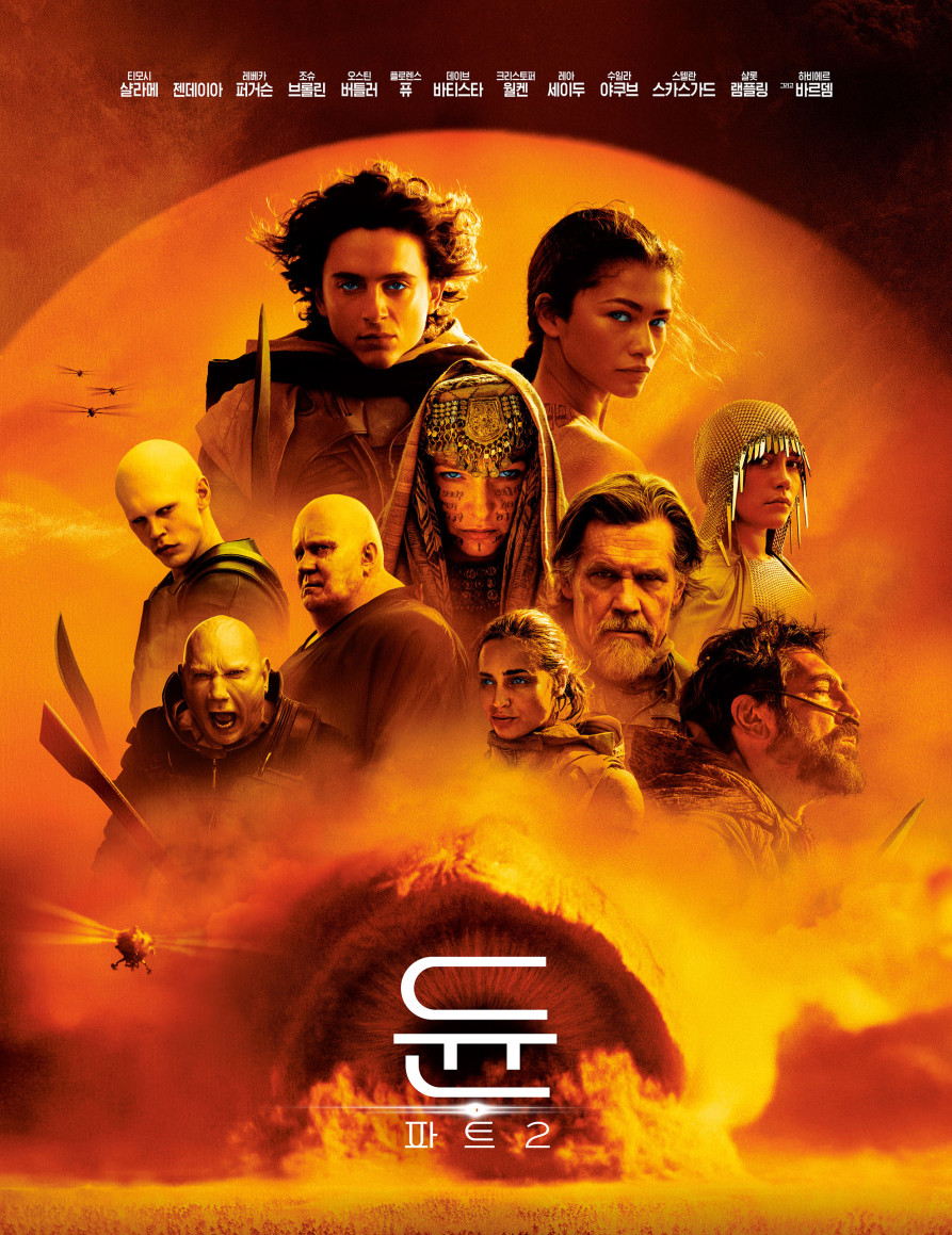 이번 작품은 전편의 티모시 샬라메, 젠데이아, 레베카 퍼거슨, 데이브 바티스타, 스텔란 스카스가드에 이어, 오스틴 버틀러, 플로렌스 퓨, 크리스토퍼 월켄, 레아 세두 등 새로운 얼굴들이 합류해 놀라운 연기 앙상블을 선사합니다. 가장 인상적인 것은 바로 이 경이로운 우주를 무대로 펼쳐지는 인간 내면의 드라마입니다. 더해지는 신비로운 우주의 배경과 그 안에서 흔들리며 성장하는 인물들의 모습이 관객들로 하여금 스스로의 우주를 탐험하는 듯한 경험을 하게 만듭니다.